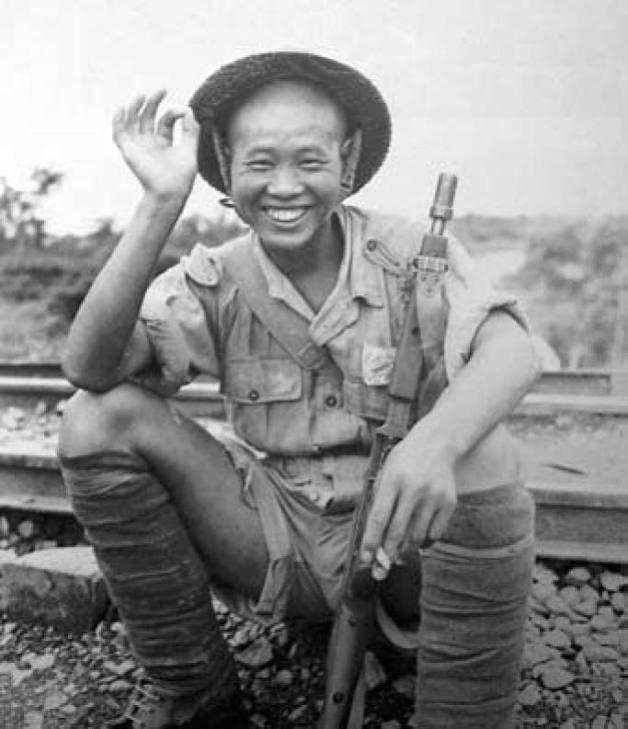 远征军的一名普通士兵,中国的绑腿,英国的钢盔,美国的冲锋枪。