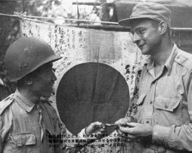 向孟拱河谷进军中,新22师一名少校送给美军军官一枚日军炮弹碎片作为纪念品。