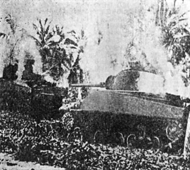 图为相良俊辅《菊与龙》中记载,两辆远征军谢尔曼坦克被日军摧毁的场面。