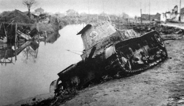 图为1937年淞沪会战,攻击汇山码头战斗中,由于缺乏步兵掩护被击毁的中国军队维克斯六吨半战车。