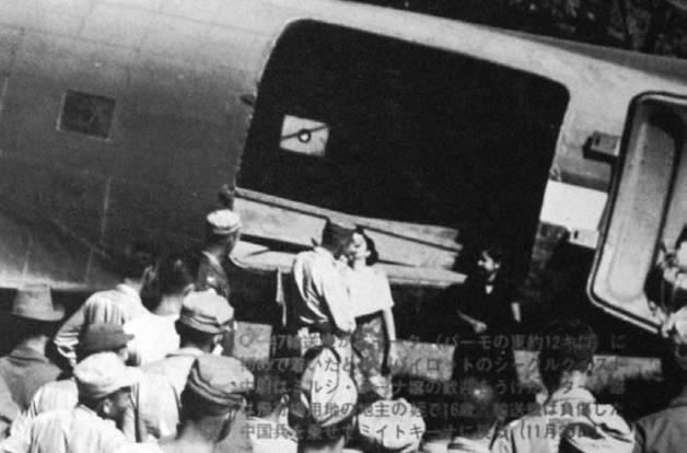 英国歌星安妮·谢尔顿到缅北演出后获赠一面缴获的日军军旗,大喜过望。安妮·谢尔顿是当时欧美最性感的明星之一。