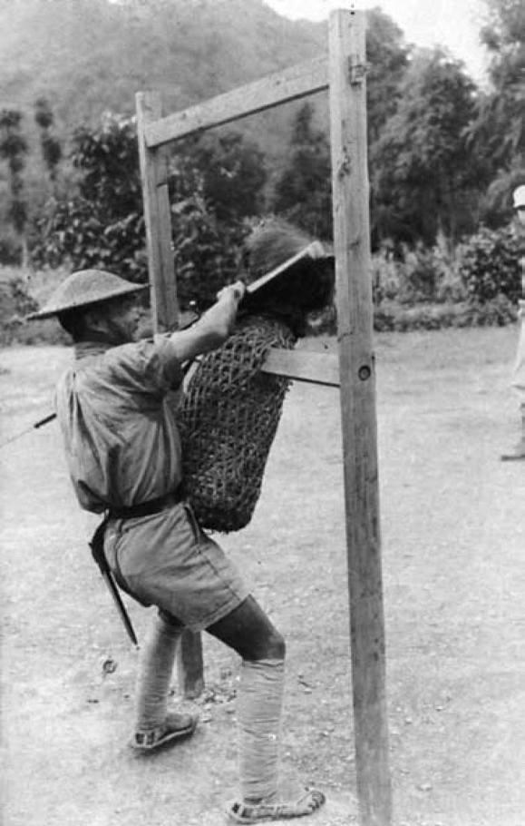 这其中就有以嗜杀成性著名的仙台师团第4联队。所谓仙台师团,指的是以日本东北仙台地区兵员组成的日军第二师团(甲等师团),代号“勇”。第二师团此前参加了著名的瓜达尔卡纳尔岛战役,因美军控制了制空制海权,在夺取亨德森机场的战斗中被打得落花流水,死伤惨重。战败撤退以后,其步兵第4联队尚有战斗力,经过在菲律宾补充重建,进驻爪哇岛驻防,辖第一大队、第二大队、联队炮中队、速射炮中队、通讯中队等,总兵力四千余人。1944年1月10日,该部队接到命令增援缅甸。第4联队的先遣部队由马来亚直接空运至缅甸的机场,再分乘汽车奔赴缅北战场。先期到达的是联队指挥机关和第一大队主力,余下的部队携带弹药物资,作为后续部队跟进。是年3月24日,该部主力到达缅北的英开道地区。