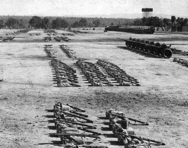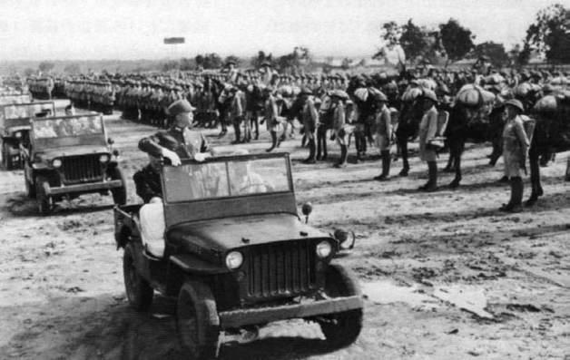 1944年2月,增援前线的远征军在兰姆迦出发前举行阅兵,这是阅兵时展示的远征军武器装备。