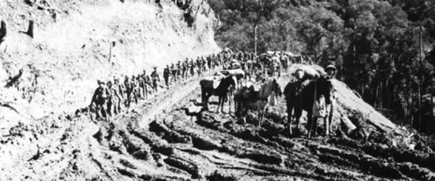 向孟拱河谷进军的中国远征军,公路没有修通之前,第一线的运输还要靠骡子。