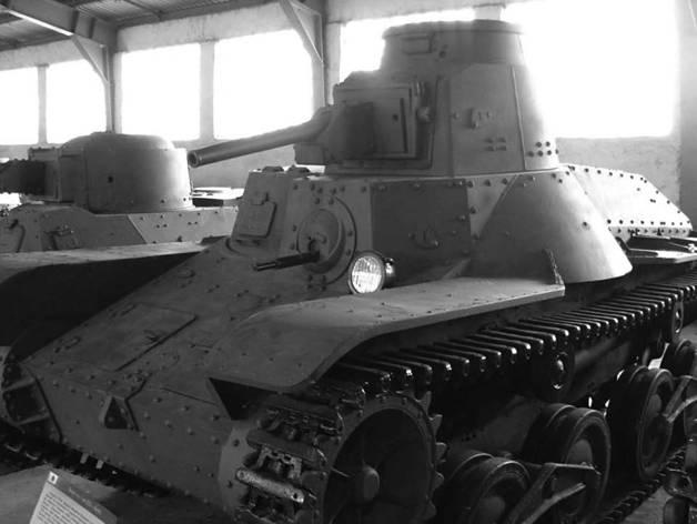 日军九五式轻型坦克,旁边是九七式装甲车,可以看到九七式比九五式更加“袖珍”。