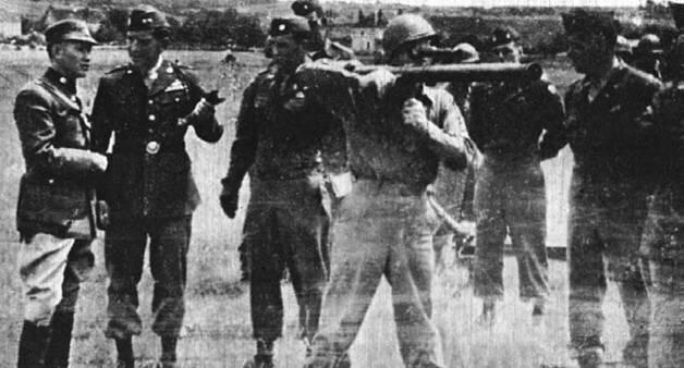 孙立人将军观看美军演示火箭筒使用方法