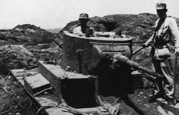 日军在松山将缴获的T-26坦克埋在土中充当堡垒