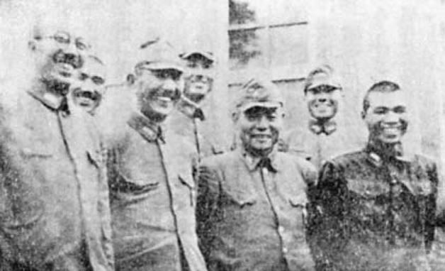 日军松山守军指挥官松井秀治大佐(前排左二)、真锅邦人大尉(右一)等人合影。