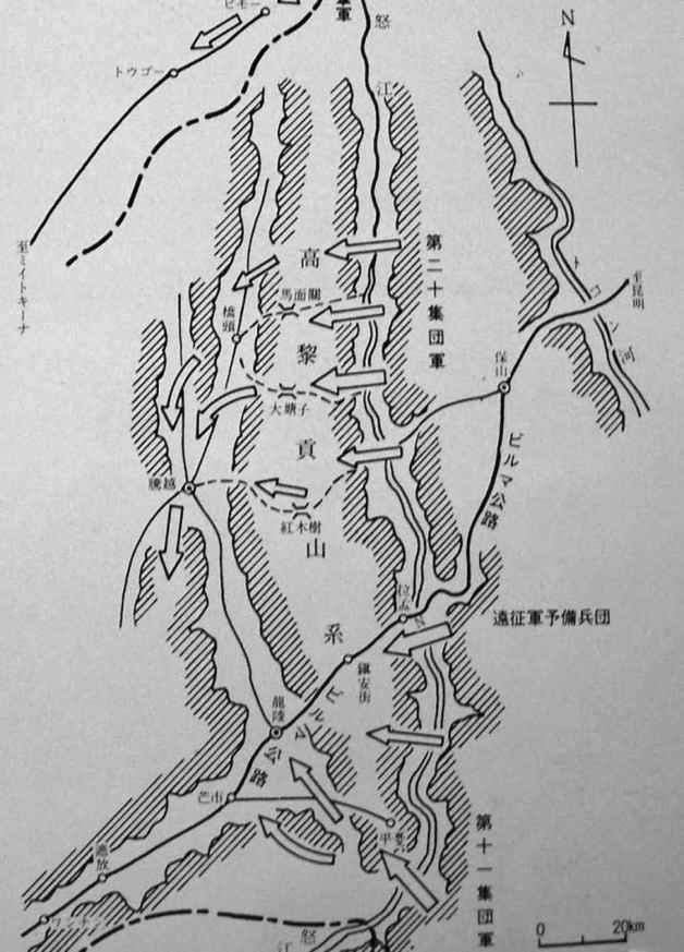 集中足够兵力以后,日军计划发动反击,将远征军击溃于滇西。1942年,日军曾经成功地将远征军逼入野人山,1944年,辻政信希望将这一幕重演。