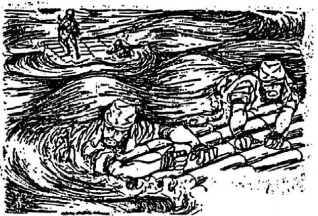 密支那日军争抢木筏,开始逃跑大竞赛(图为日军回忆录中所绘)。