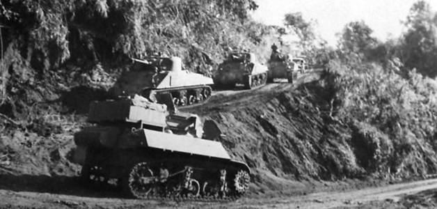 在北缅战役的前期战斗中,远征军装甲部队的主要车辆就是前面提到的M3A3轻型坦克,这种坦克是焊接车体,装备一门37毫米炮,三挺机枪,车上有无线电通信设备,是M3系列坦克最完善的型号,其出色的越野能力在地形复杂的缅北战场发挥得淋漓尽致。在缅北前线,尽管随时有战斗损耗,中国远征军通常保持有100至125辆M3A3坦克,是对日军作战的铁拳。