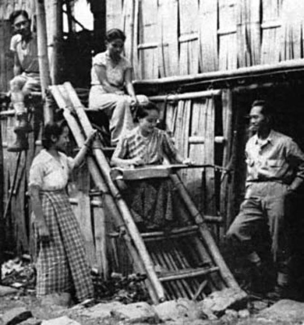 这是远征军野战医院中的缅甸护士在和中国士兵谈天