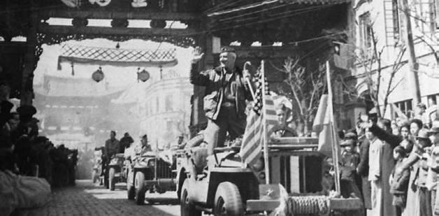 远征军车队到达昆明,车上的是工程兵英雄皮克准将。